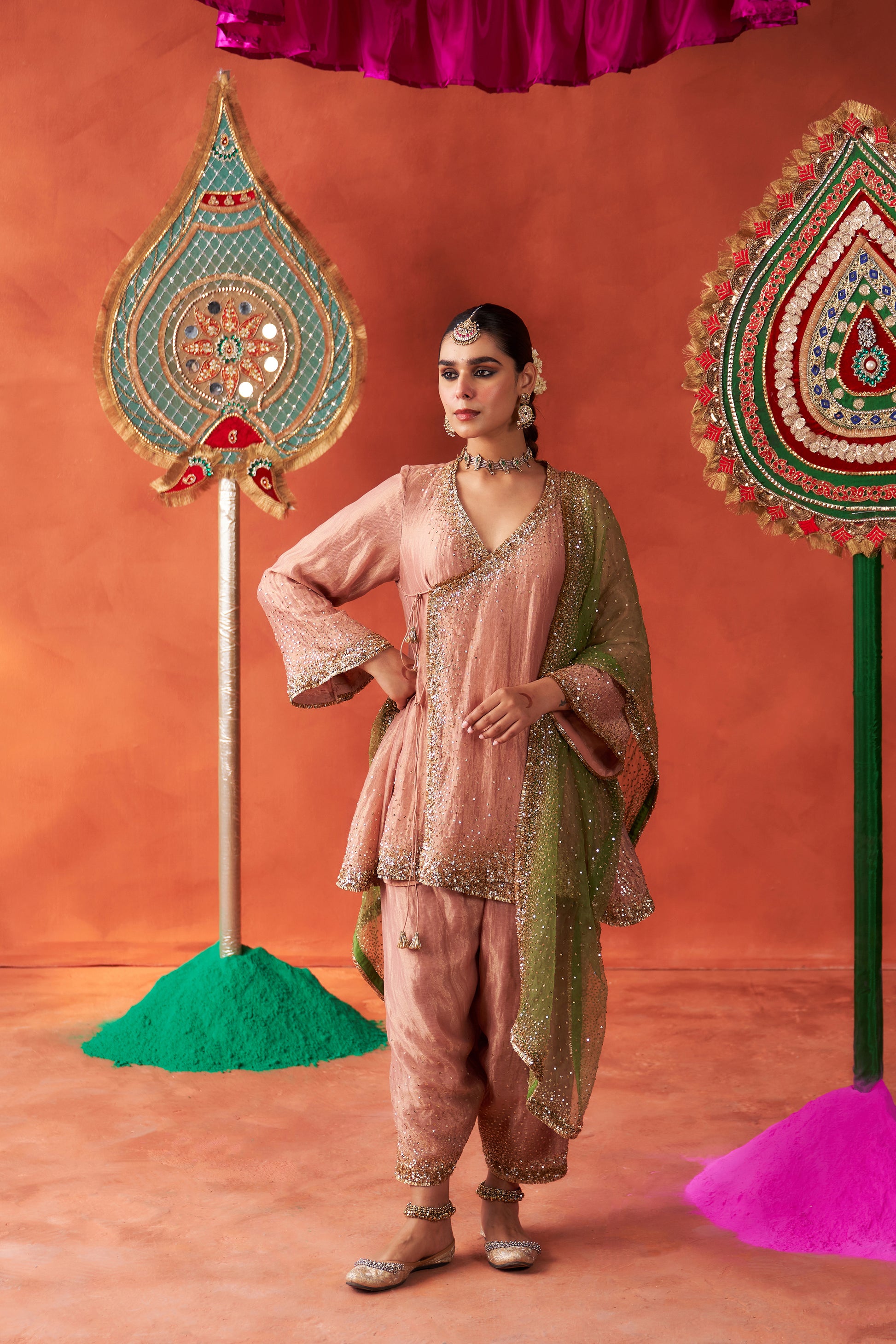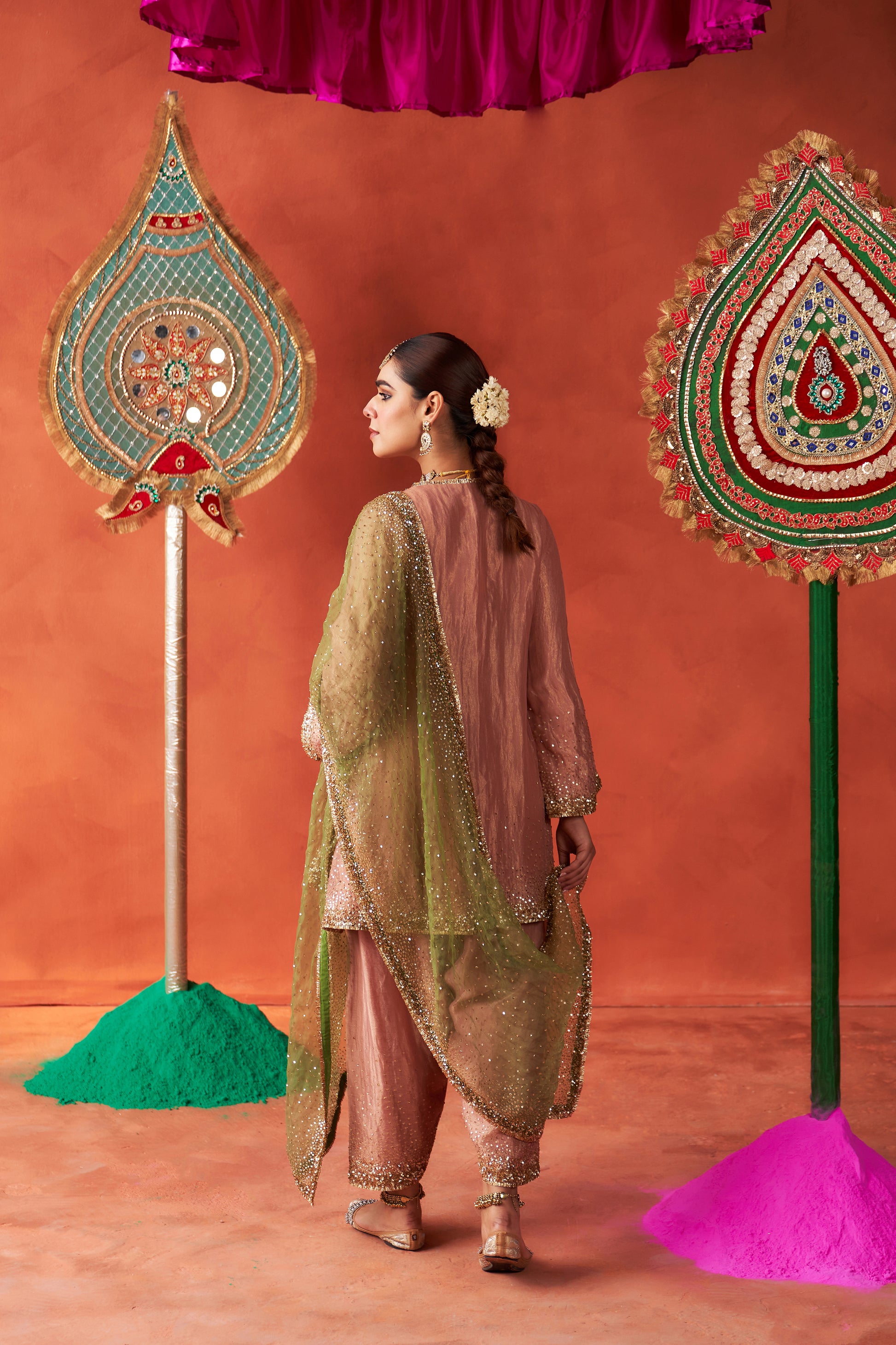 - Color: Peach Pink Kurta And Salwar,Mint Dupatta