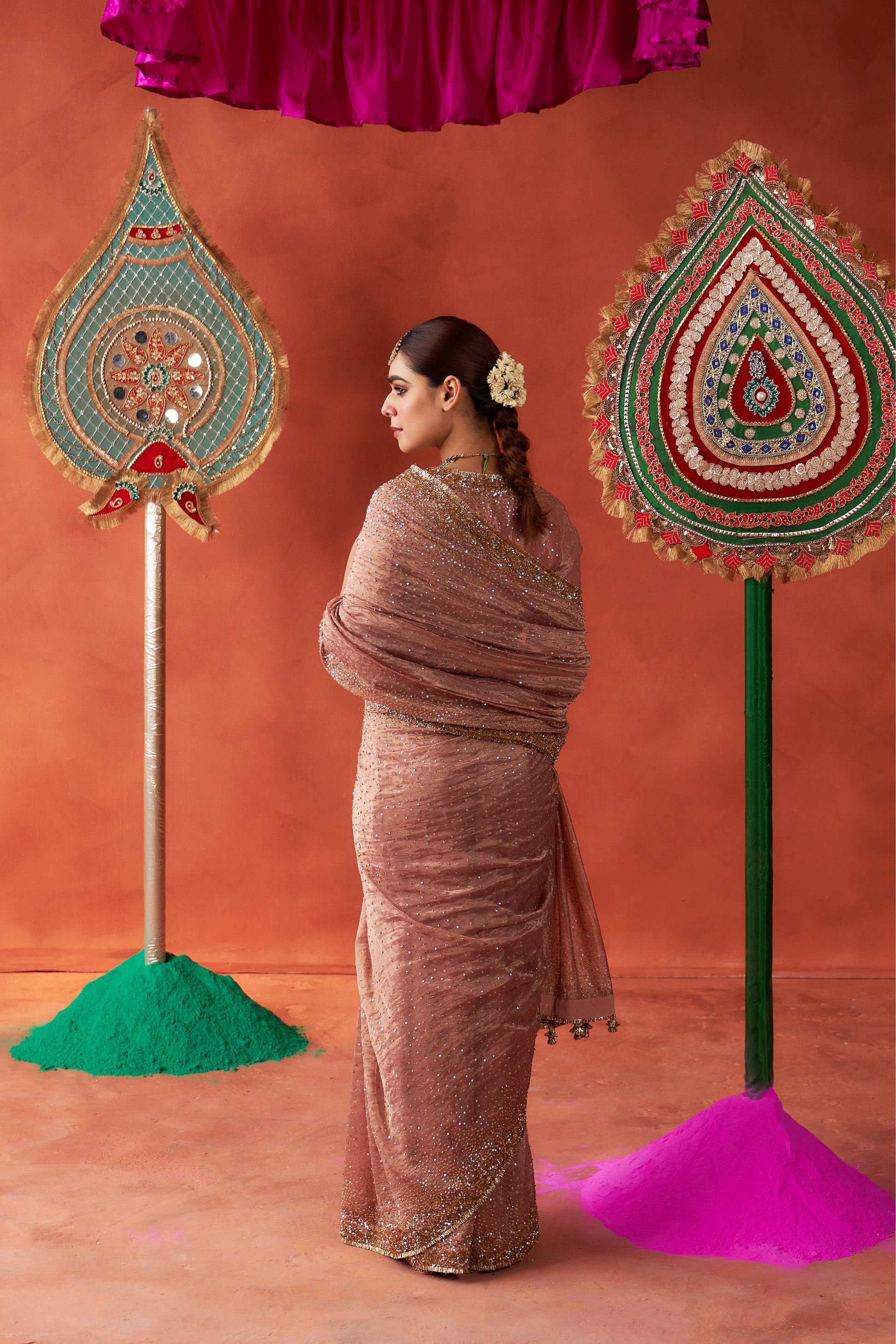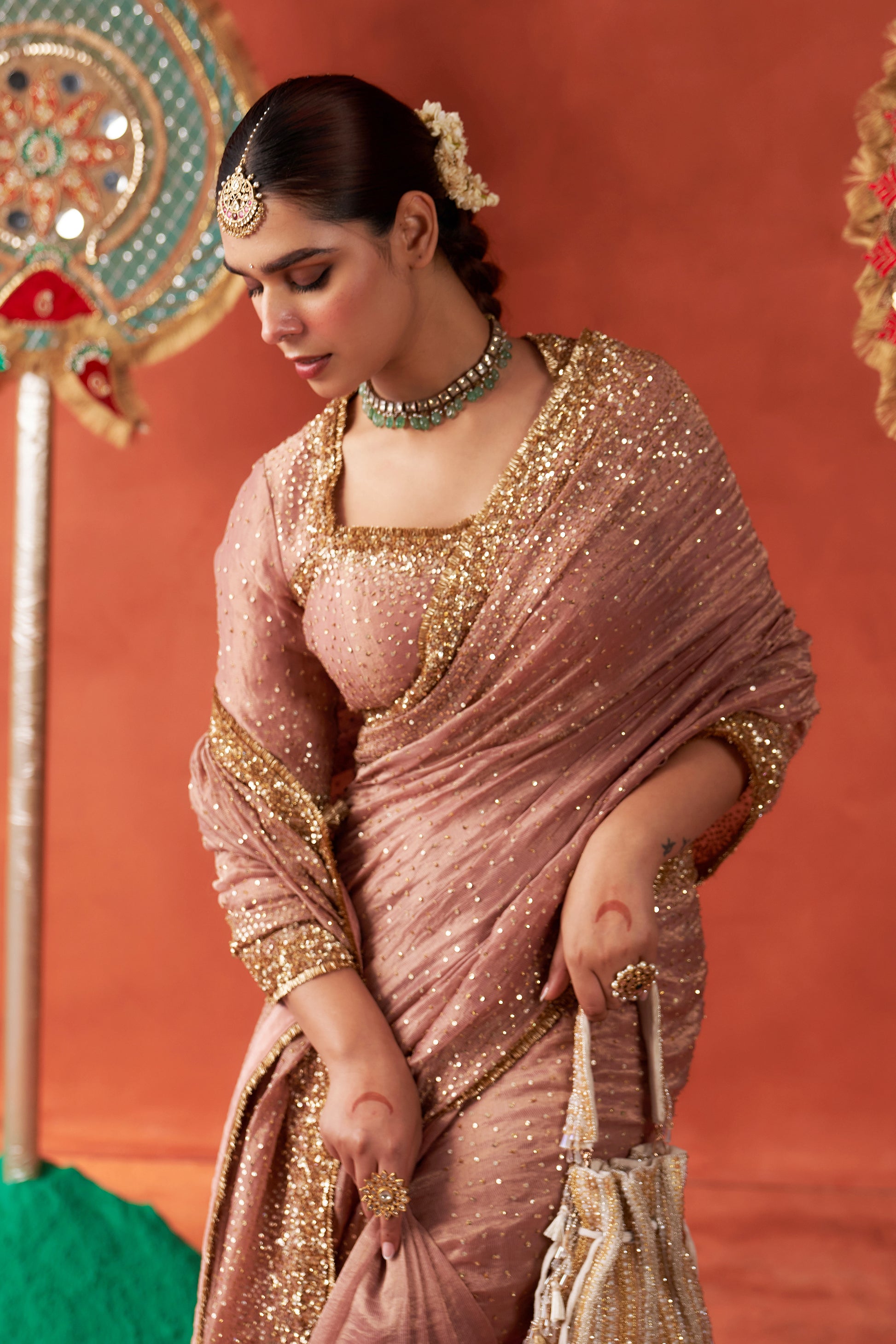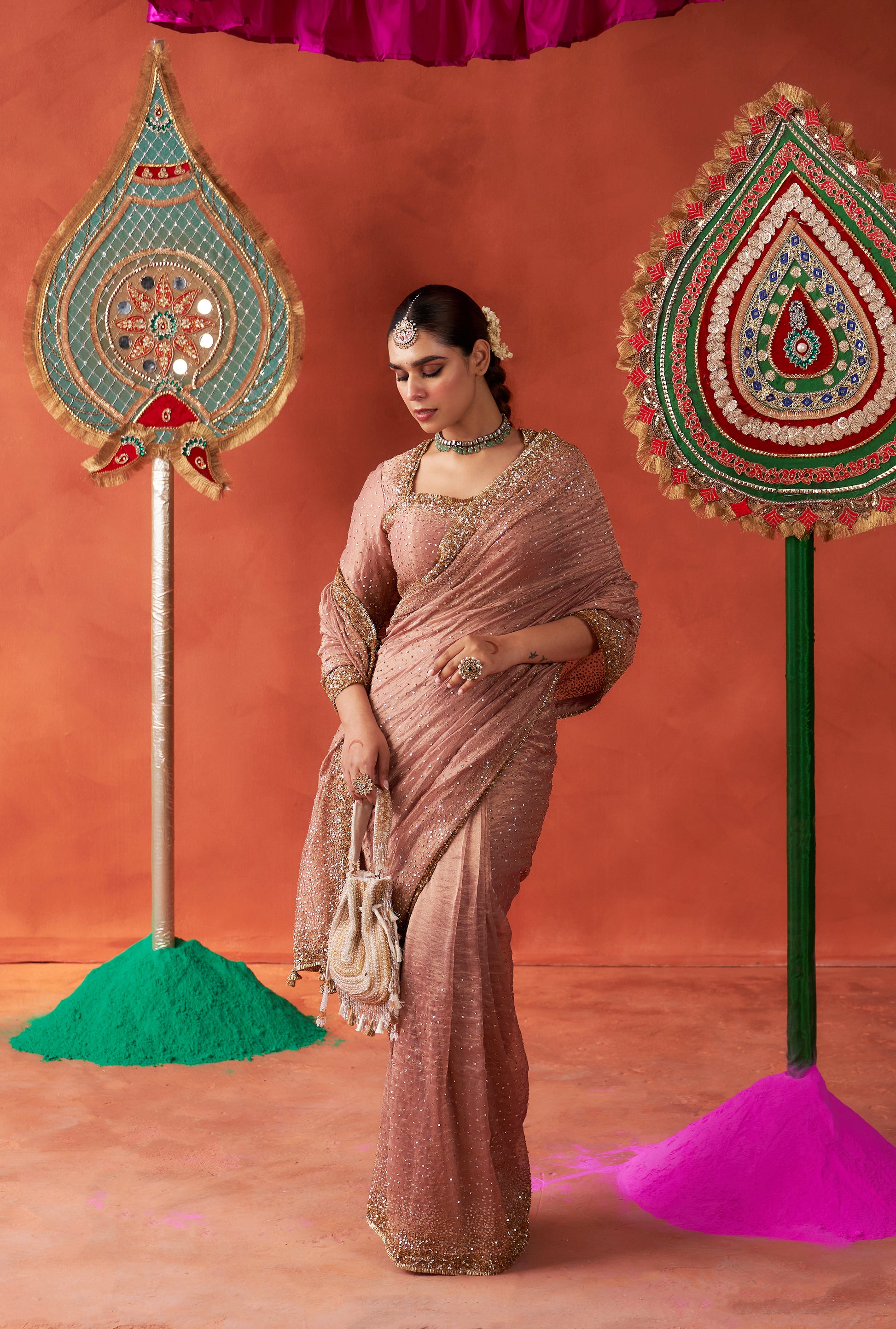 - Color: Peach Pink Saree, Peach Pink Blouse