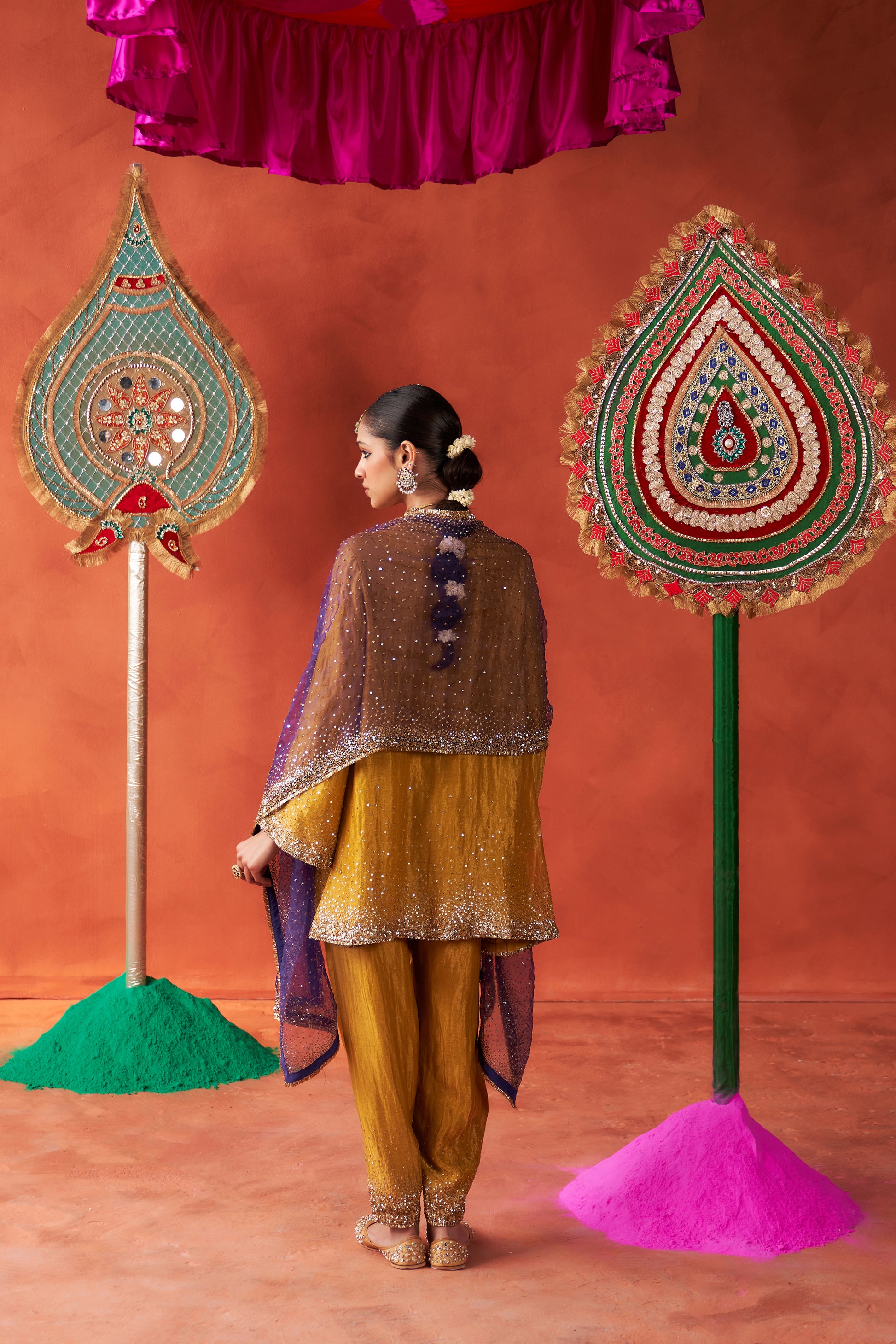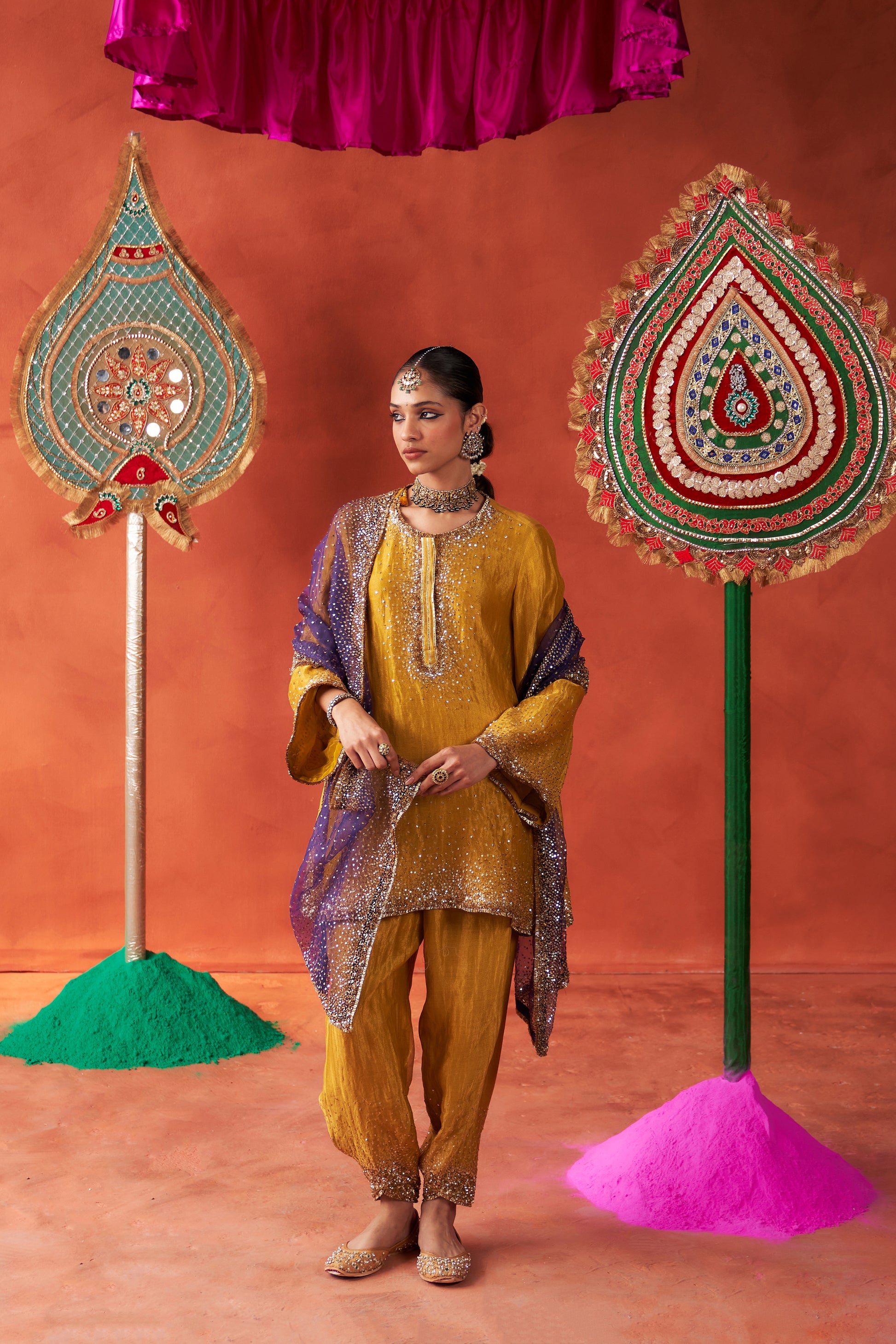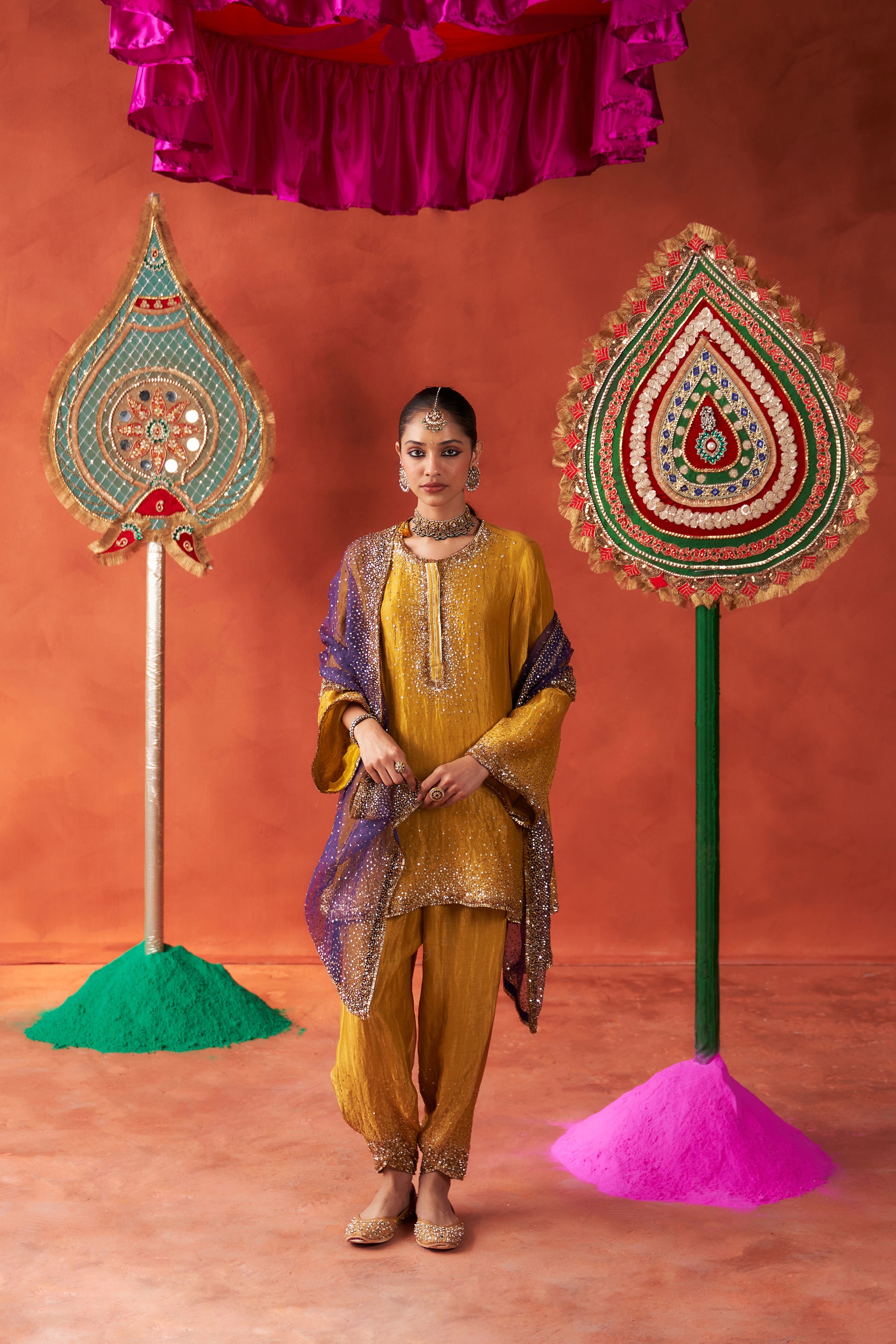- Color: Mustard Kurta And Salwar, Purple Dupatta