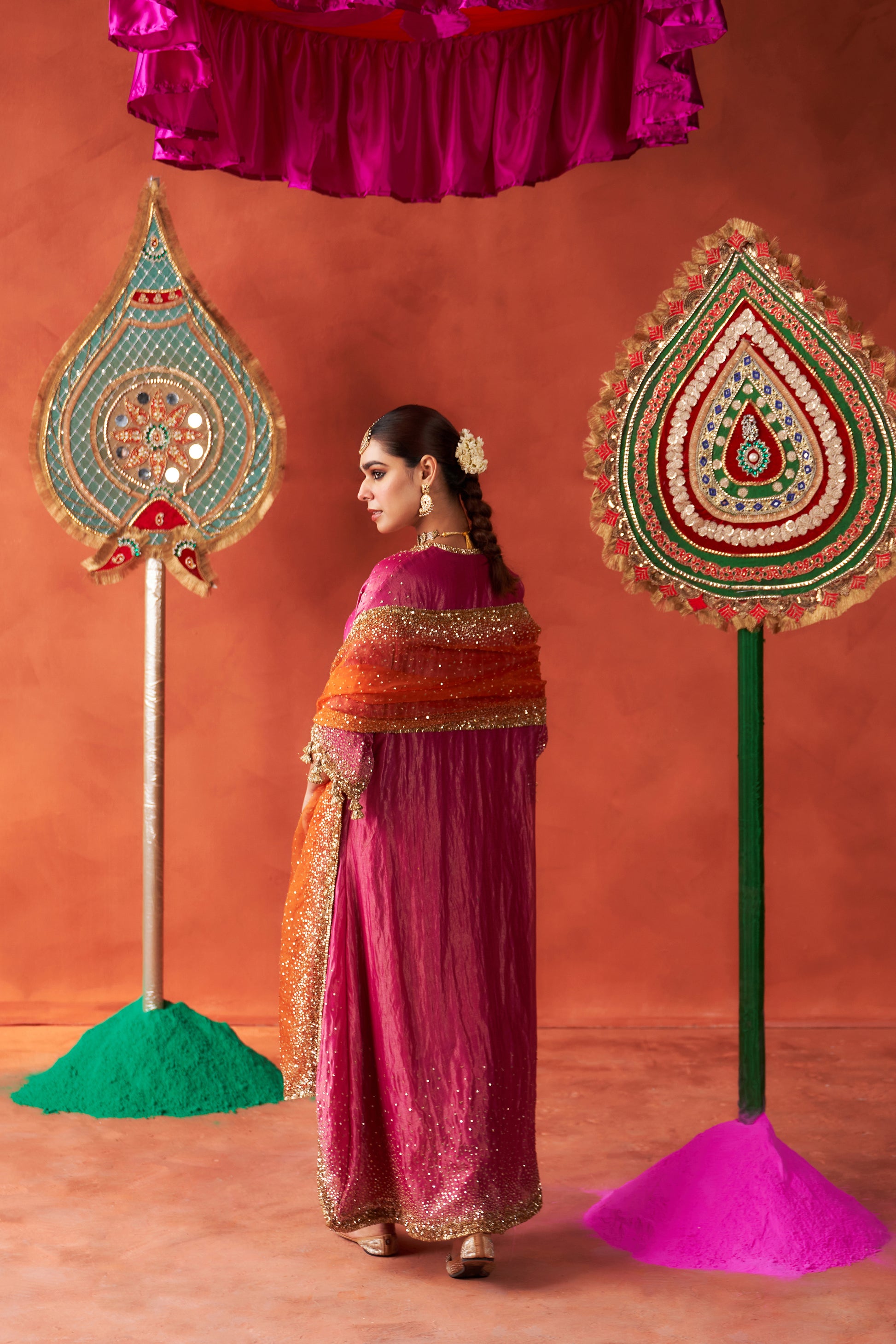 - Color: Fuschia Kurta And Salwar, Orange Dupatta