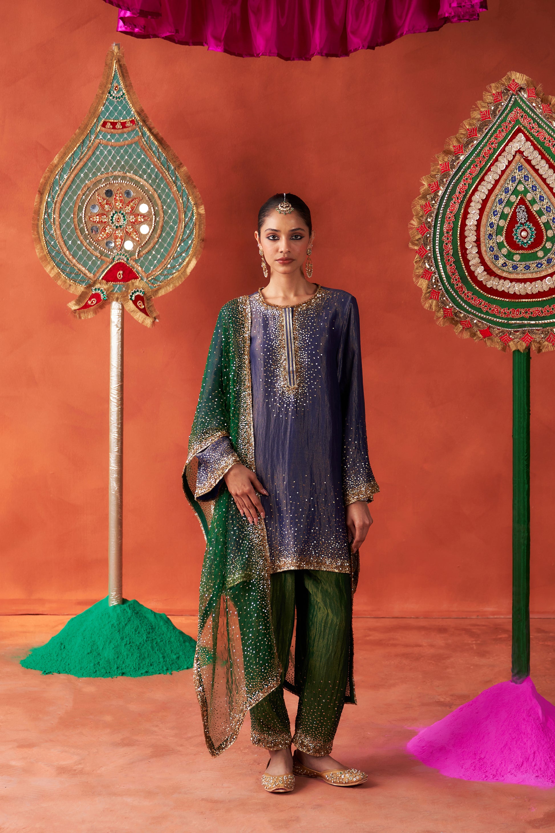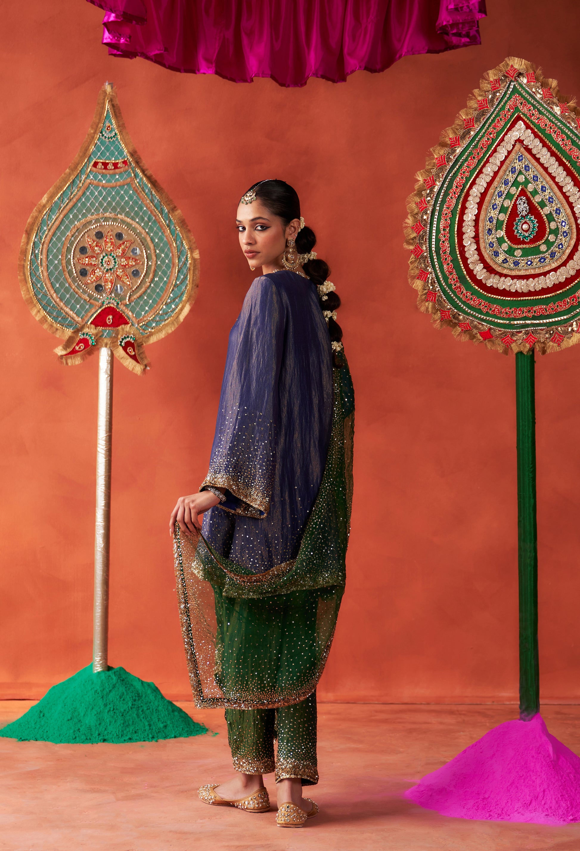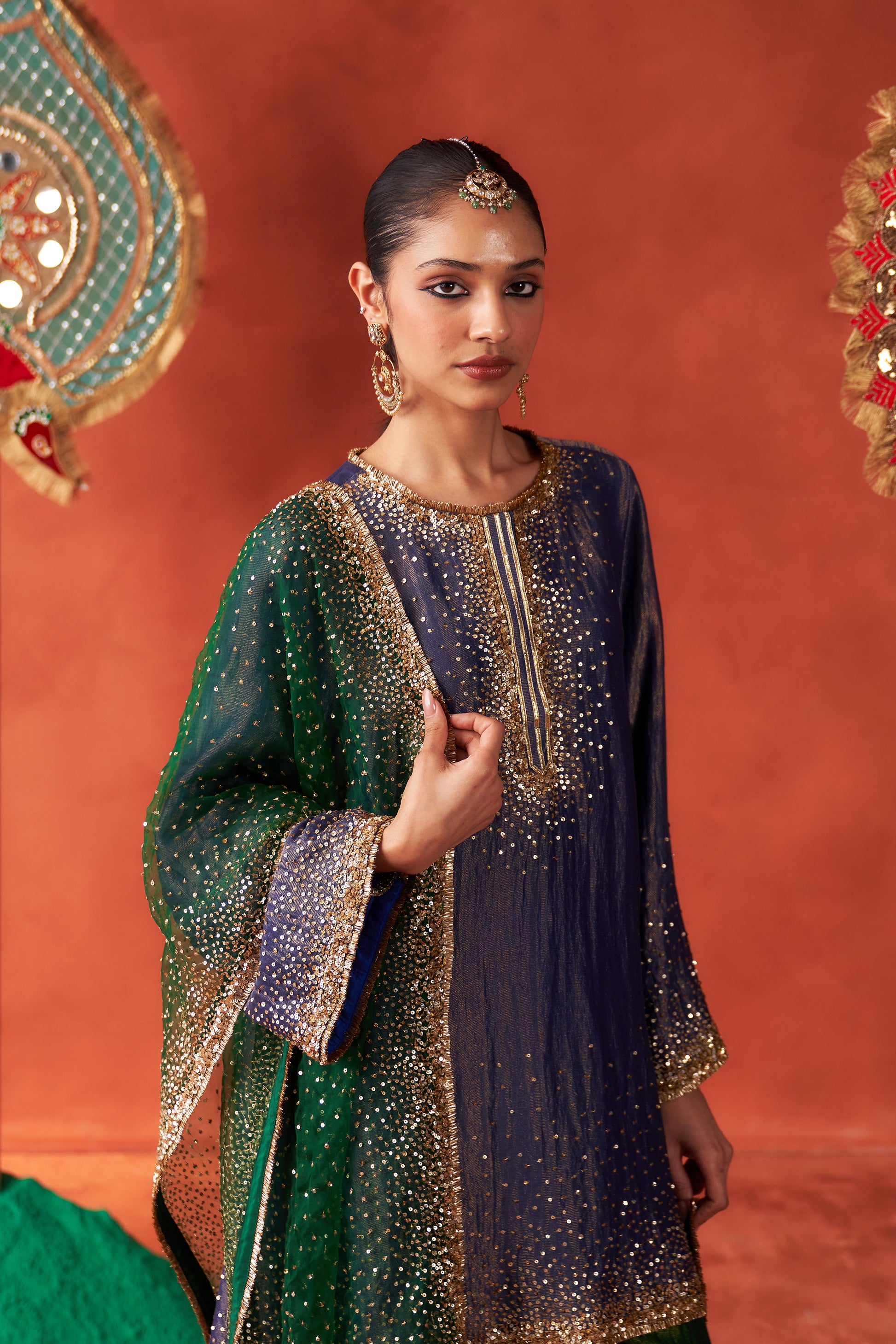 - Color: Electric Kurta, Emerald Sharara & Dupatta