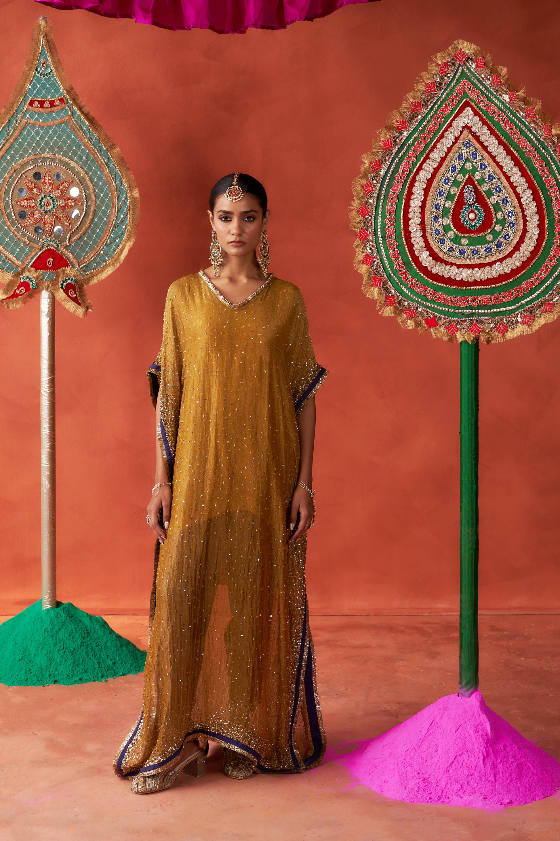 - Embellishments: Dusting Of Golden Sequin Embroidery